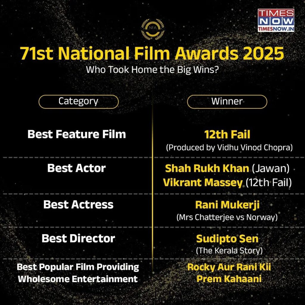 - सर्वोत्कृष्ट चित्रपट : ट्वेल्थ फेल – दिग्दर्शक: विधू विनोद चोप्रा