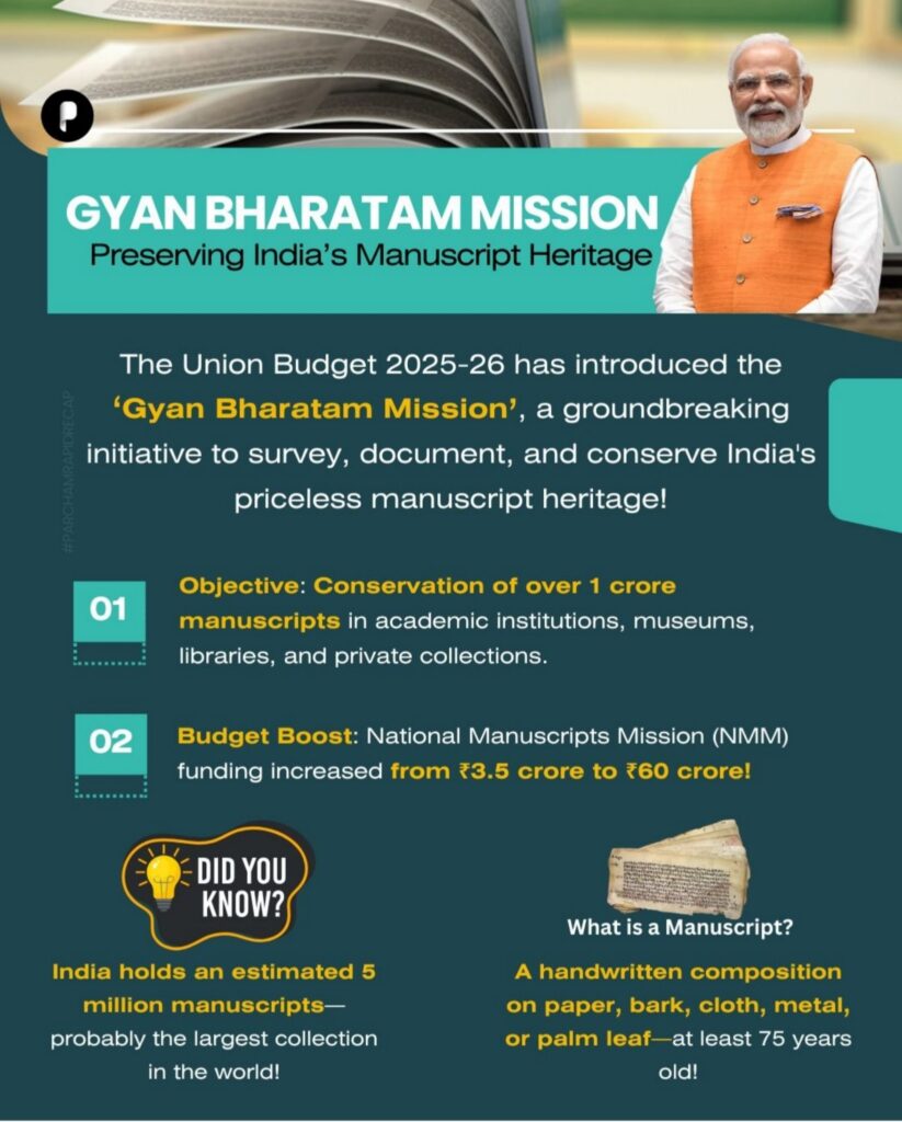 - राष्ट्रीय हस्तलिखित मिशनसाठी ₹60 कोटींचे बजेट