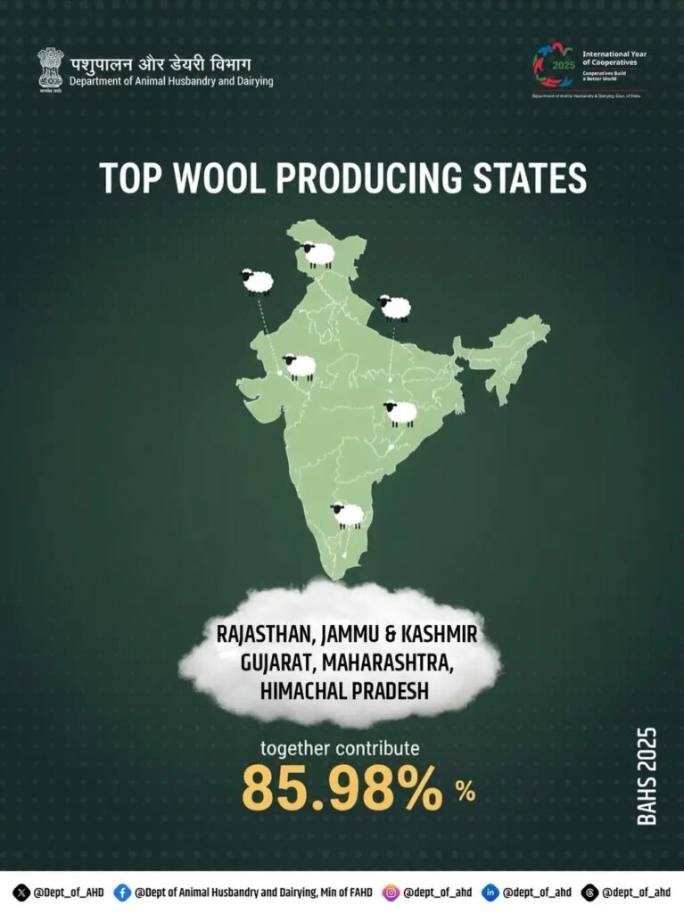 • भारतातील लोकर उत्पादनात राजस्थानचा पहिला क्रमांक